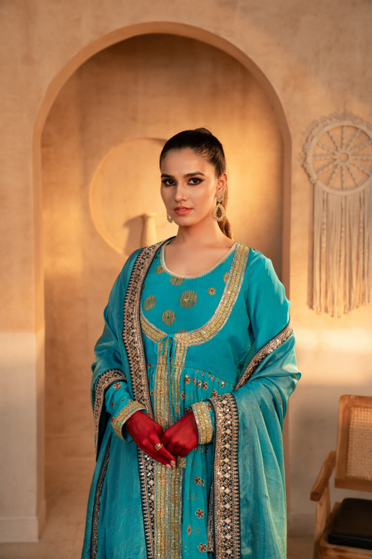 Bubbly Blue Sharara Set with Elegant White Embroidery Detail