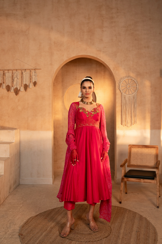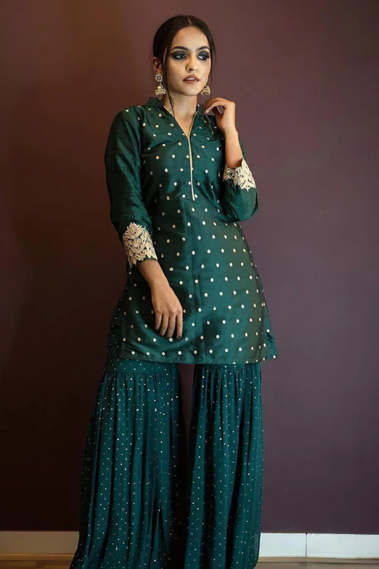 Chanderi Silk Kurta and Sharara Set with Elegant Embroidery and Chiffon Dupatta