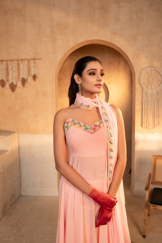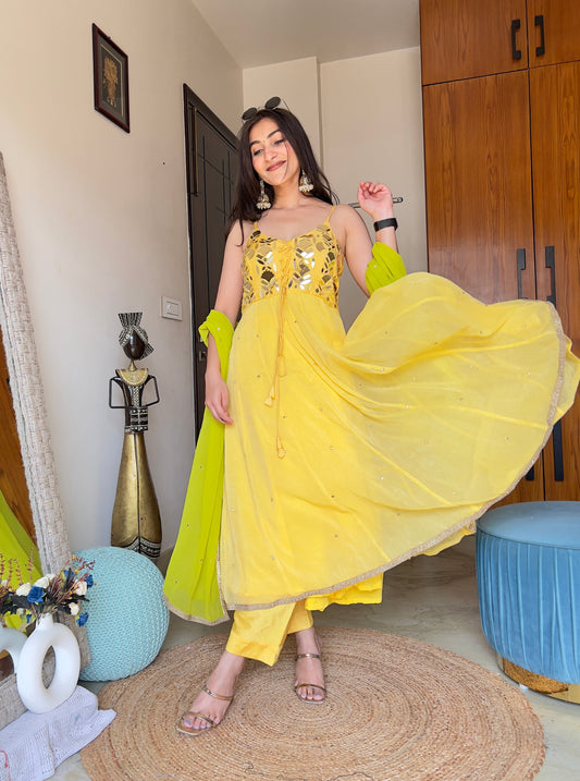Yellow Georgette Anarkali Suit with Embroidered Dupatta