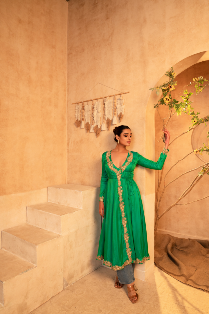 Handcrafted Green Tie & Dye Kurta with Exquisite Borders