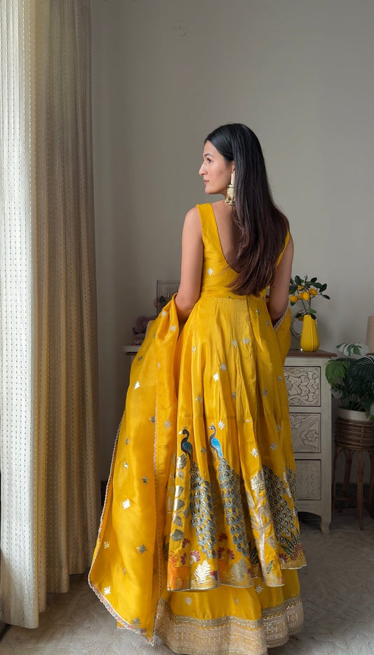 Sunshine Yellow Kurta with Traditional Deer and Peacock Print Kurta
