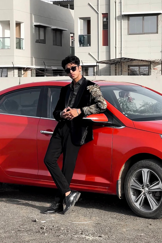 Handcrafted Black Silk Kurta with Yoke Mirror Work