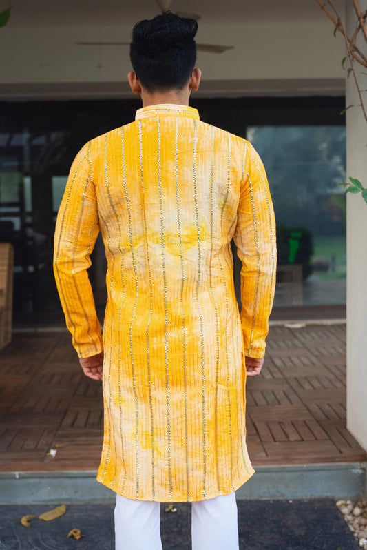 Yellow Mirror Work Checks Tie & Dye Kurta