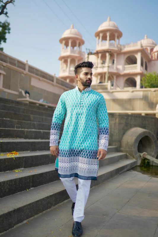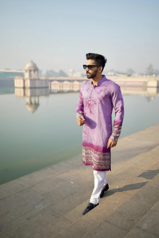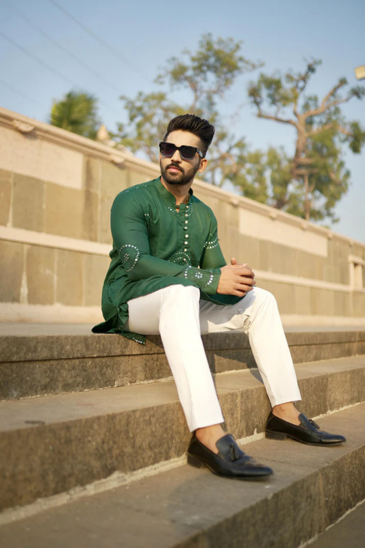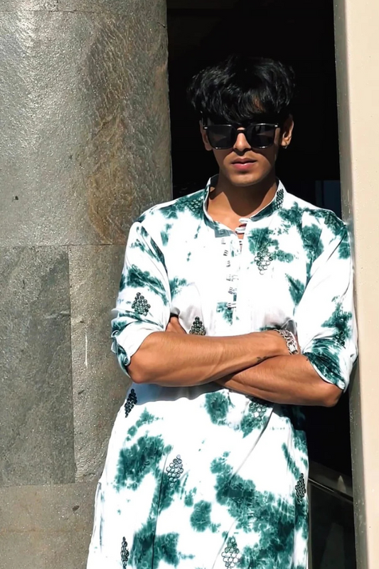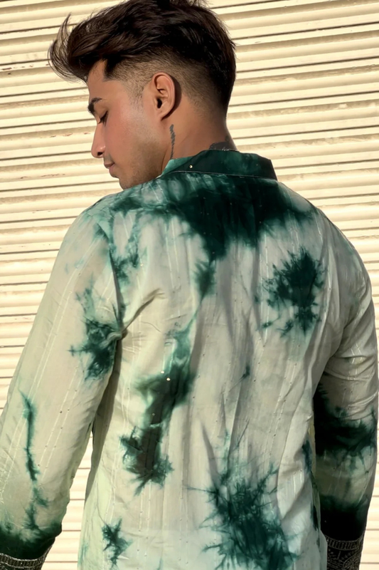 Handcrafted Green Tie & Dye Kurta with Exquisite Borders