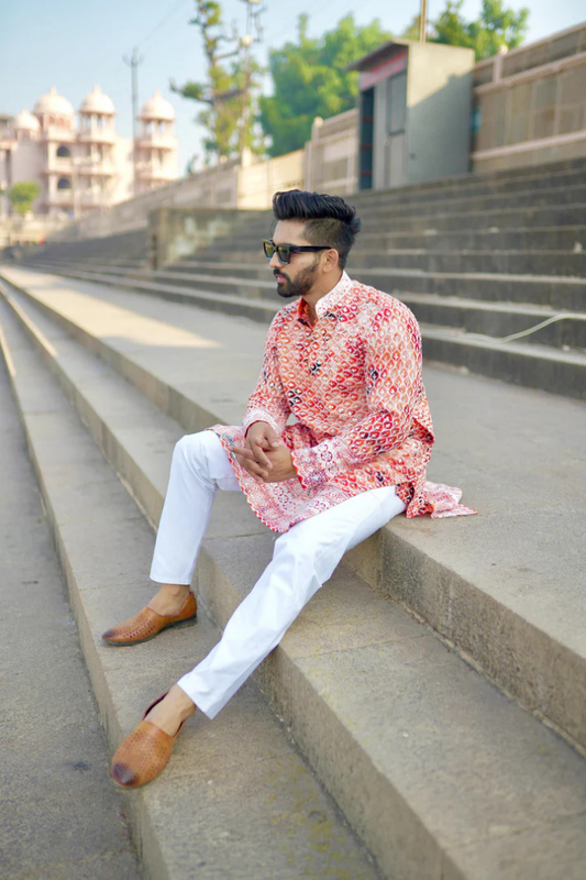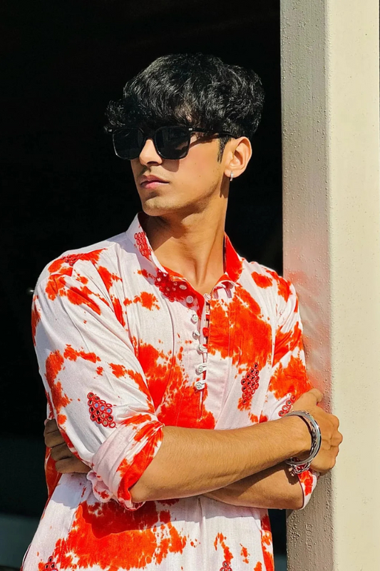 Anar - Orange Batik with White Embroidery Rayon Kurta