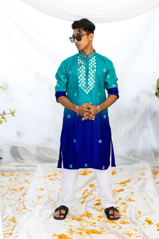Handcrafted Green Tie & Dye Kurta with Exquisite Borders