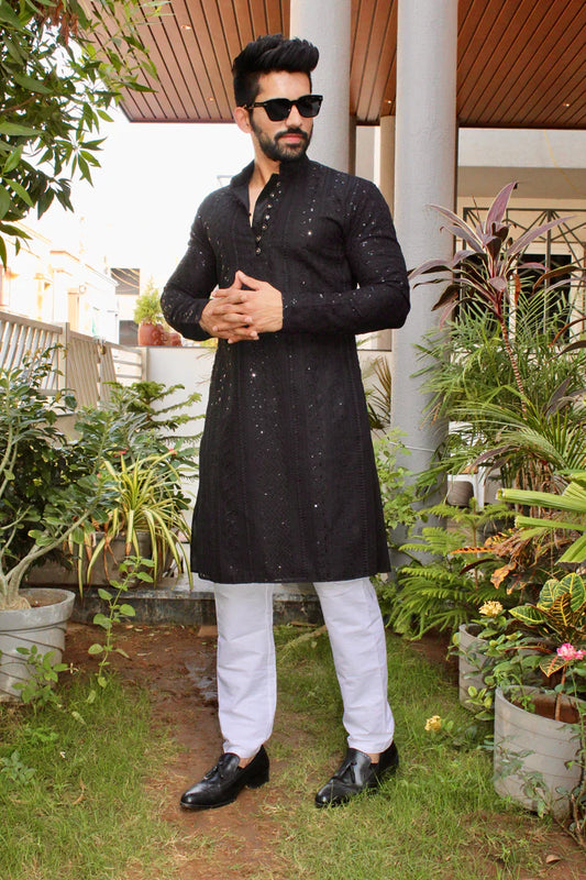 Nila Aasman Georgette Kurta with All-White Embroidery