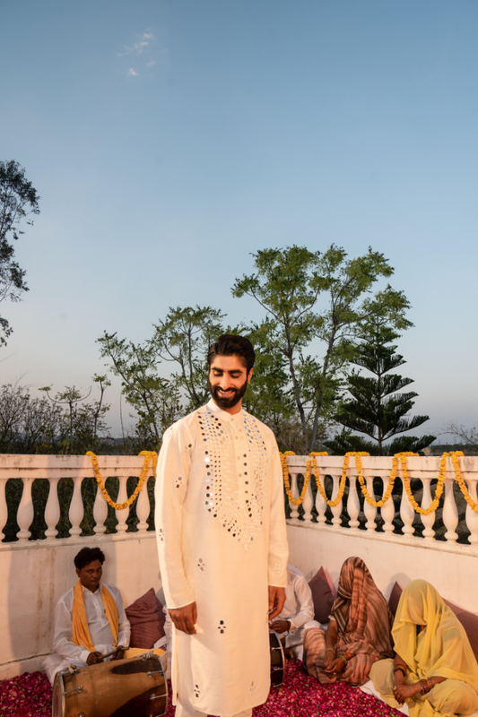Amber Sparrow Mirror Work Kurta - Cotton Blend