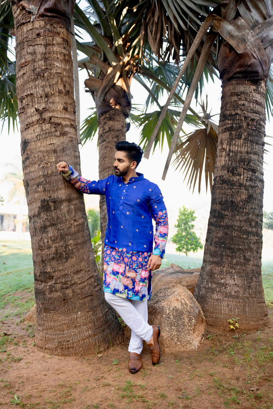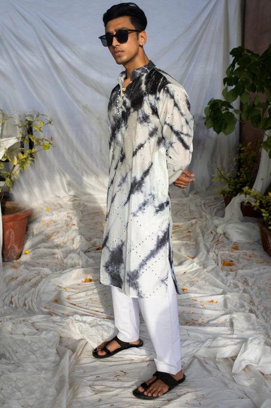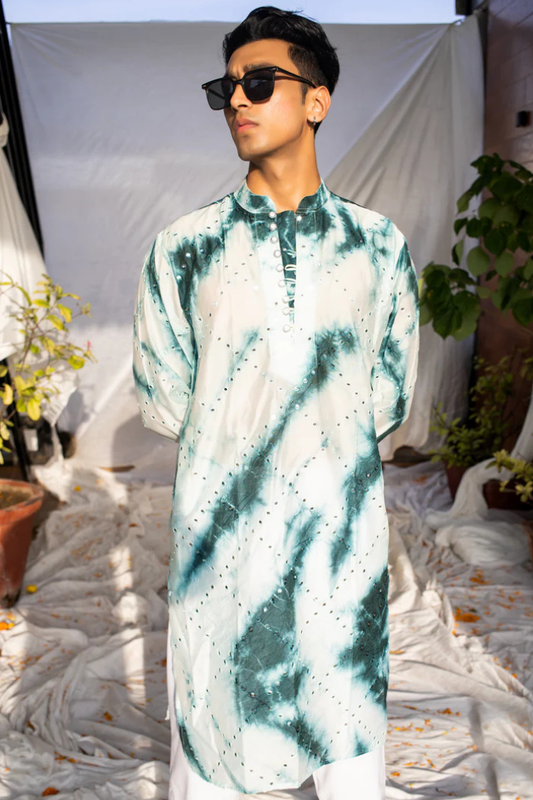 Unique Green-Indigo Shibori Kurta with Mirror Details