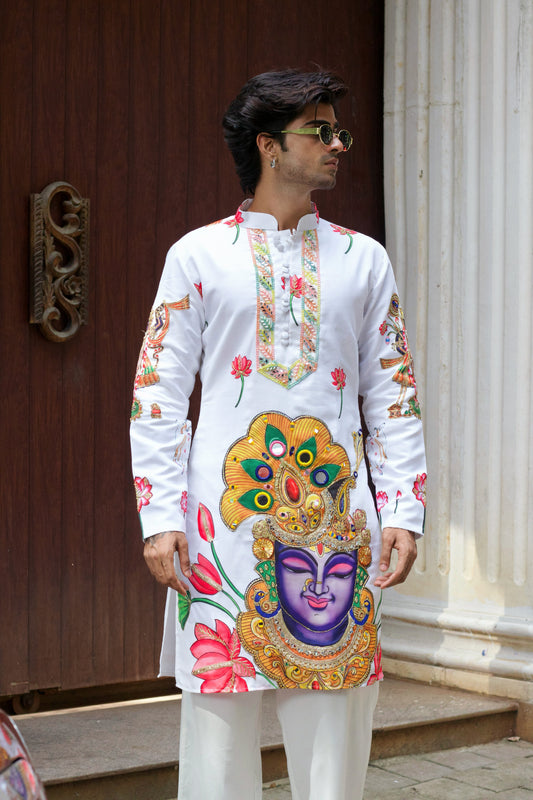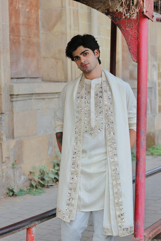 Phoenix Gray Mirror-Embroidered Chanderi Silk Kurta