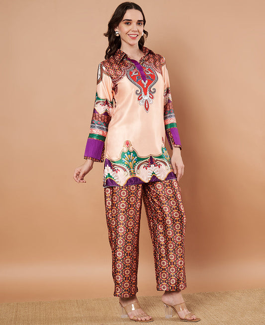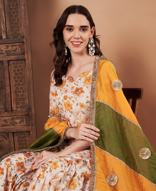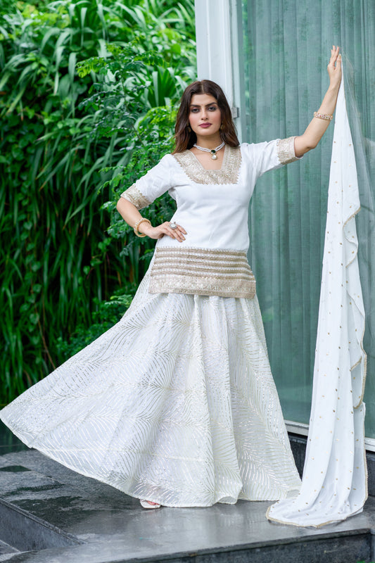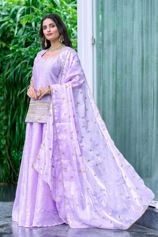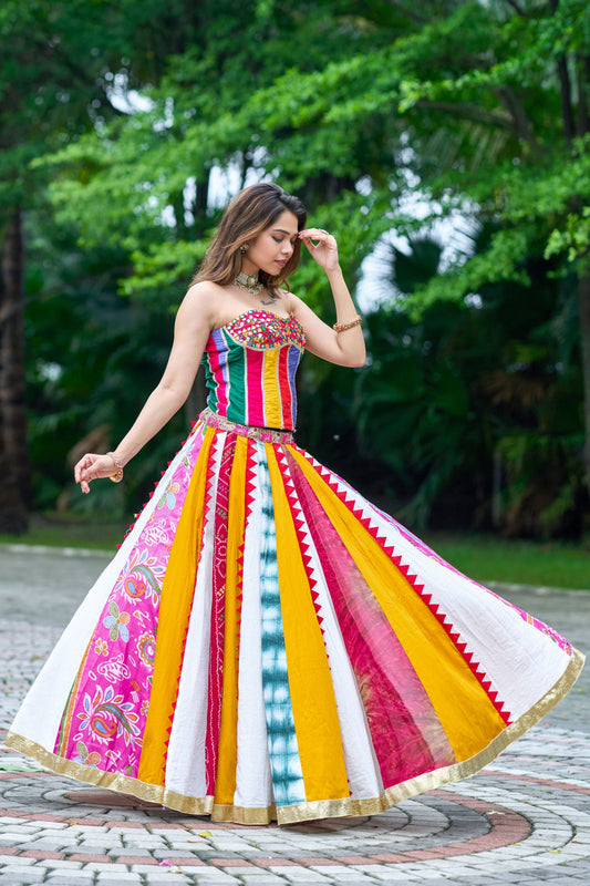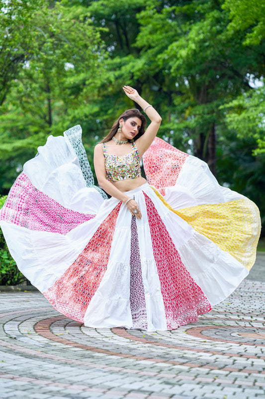 Multicolour Chand Embriodery Lehanga With Mirror Blouse