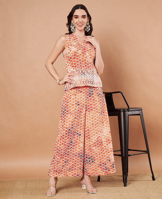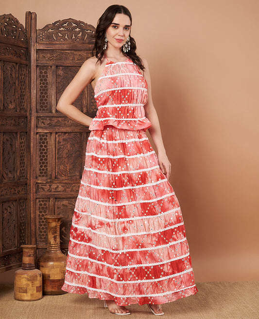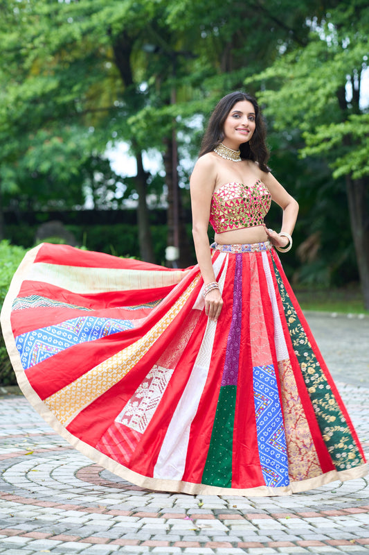 Red Scarlett Corset Mirror Blouse With Multi Lehanga