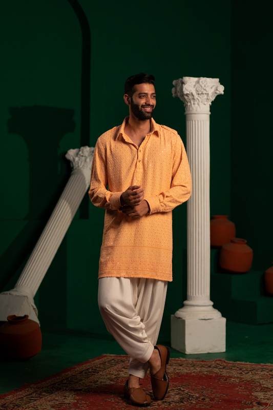 Dior Orange Border Kurta