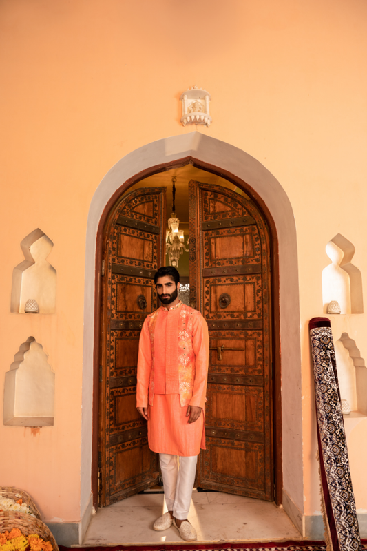 Carnelian Mirror Waistcoat Kurta
