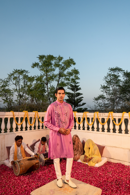 Pearl Pink Foil Mirror Kurta