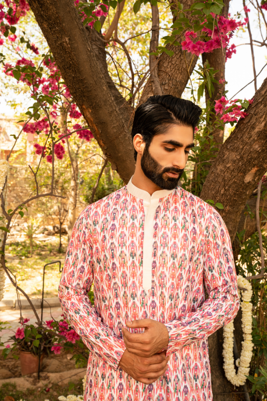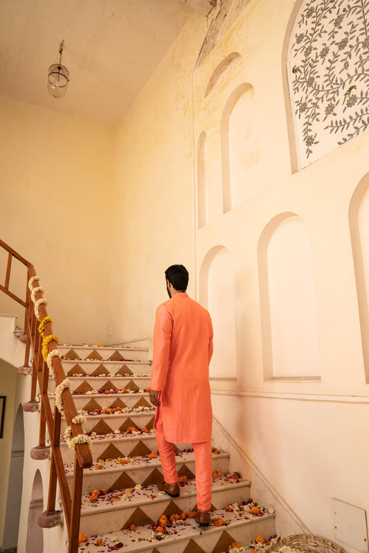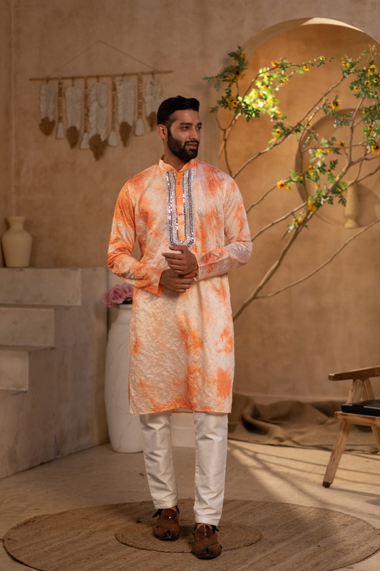 Vibrant Salmon Orange Crystal Mirror Kurta Set