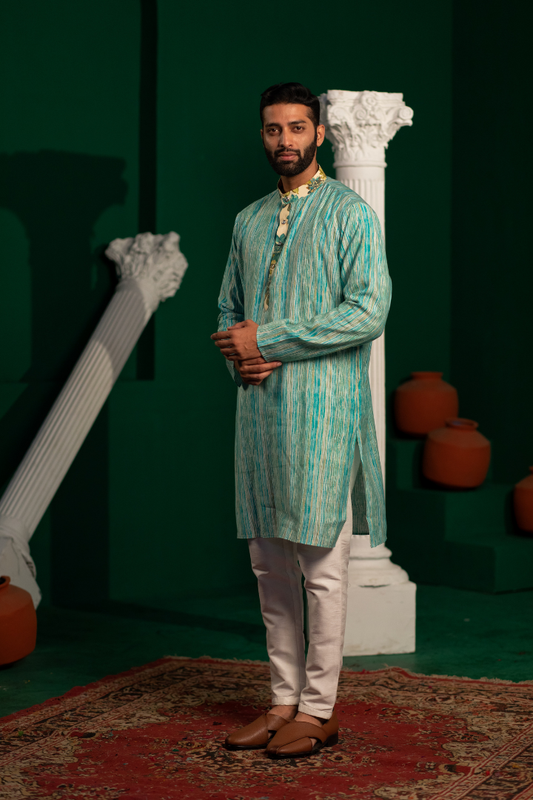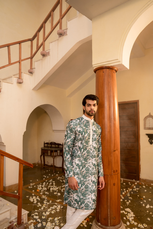 Emerald Sequin Jodhpuri with Lucknowi Embroidery and Silk Pants