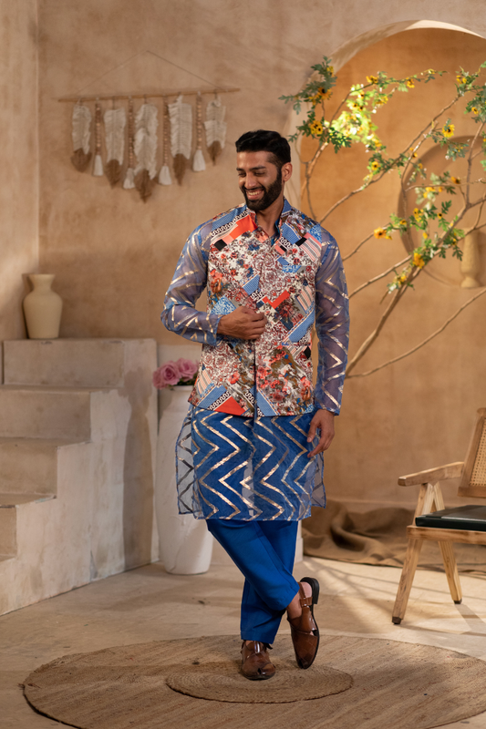 Regal Medium Violet Mirror Kurta - Luxurious Allure