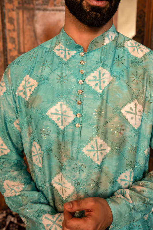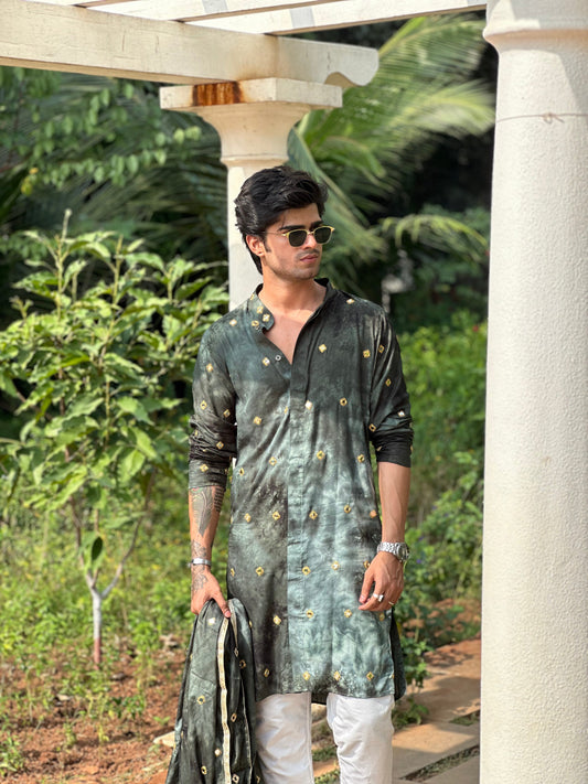 Unique Green-Indigo Shibori Kurta with Mirror Details