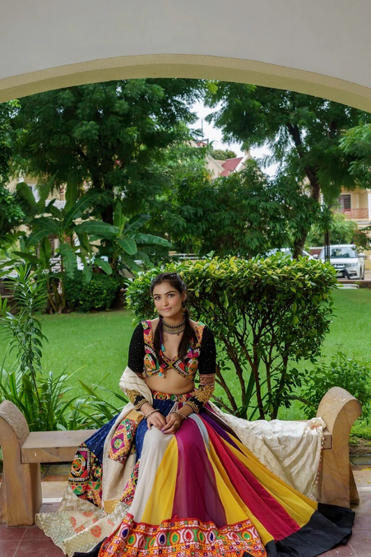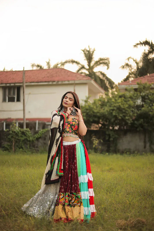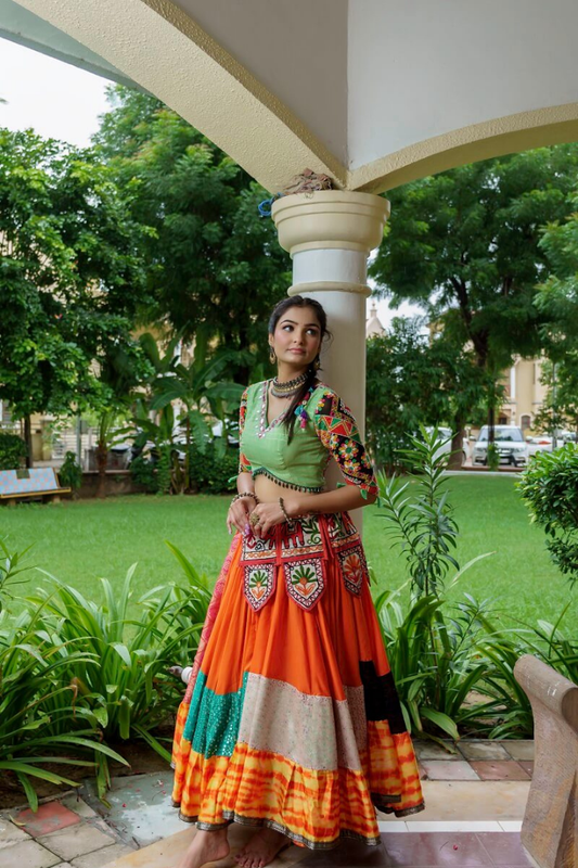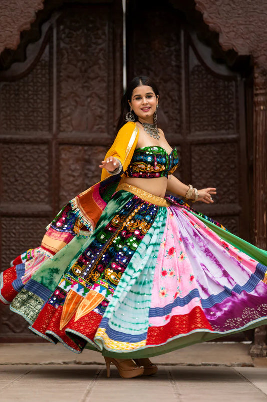 Multi-color Lehenga With Kutchi Blouse With Silk Dupatta