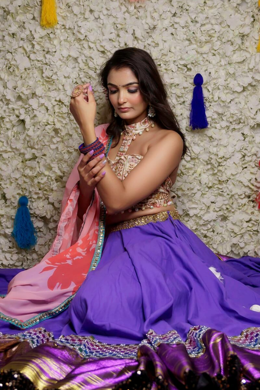 Floral Blouse with Vibrant Lehenga & Chiffon Dupatta