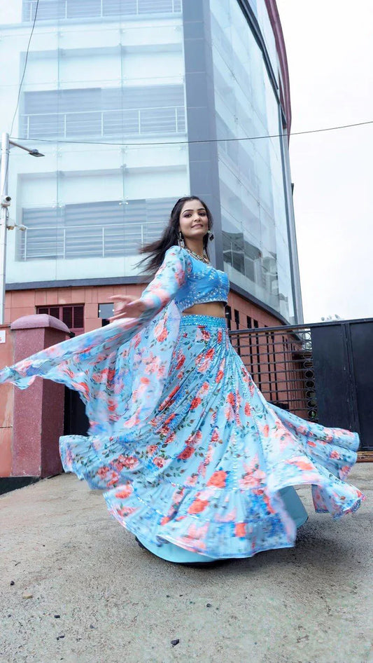 Blue Floral Lehenga Choli And Dupatta