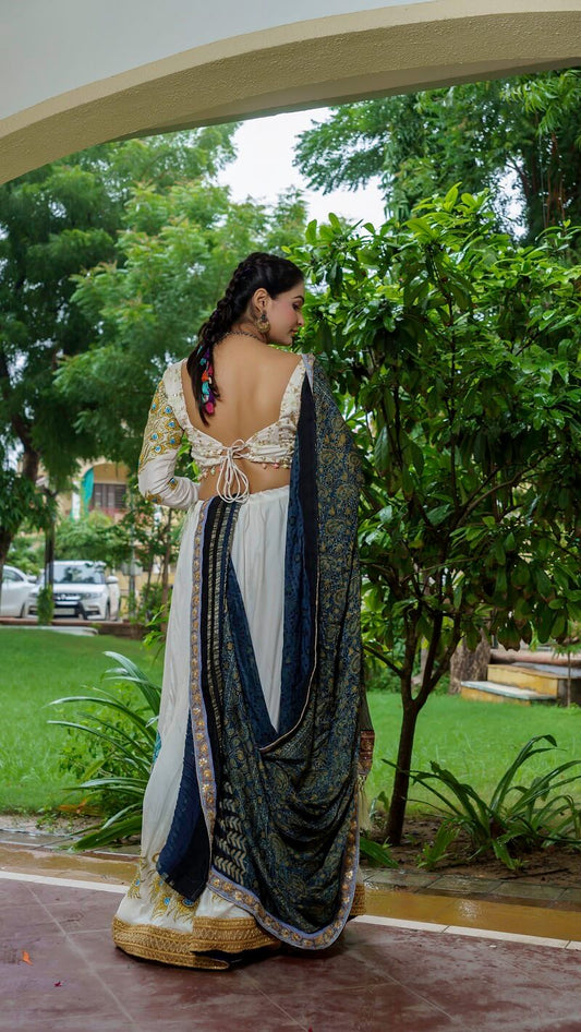 White Silk Lehenga With Gajji Dupatta