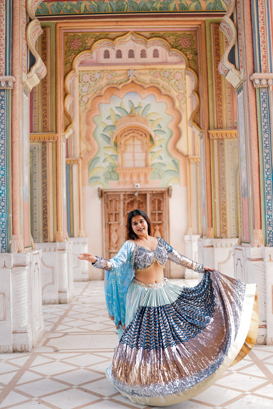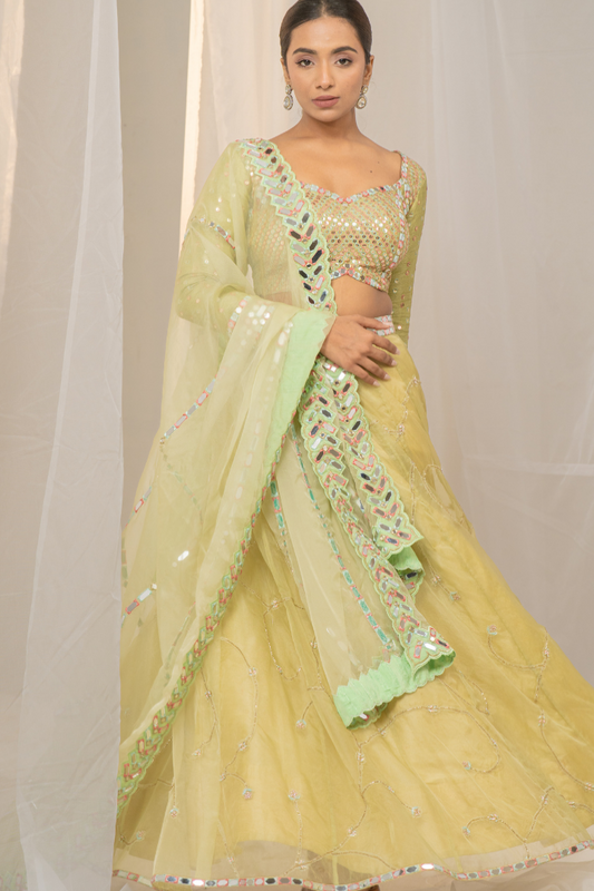 Lilac Organza Lehenga Set with Ruffle Blouse