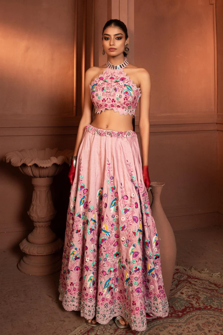 Abigail Raw Silk Crop Top and Skirt Set