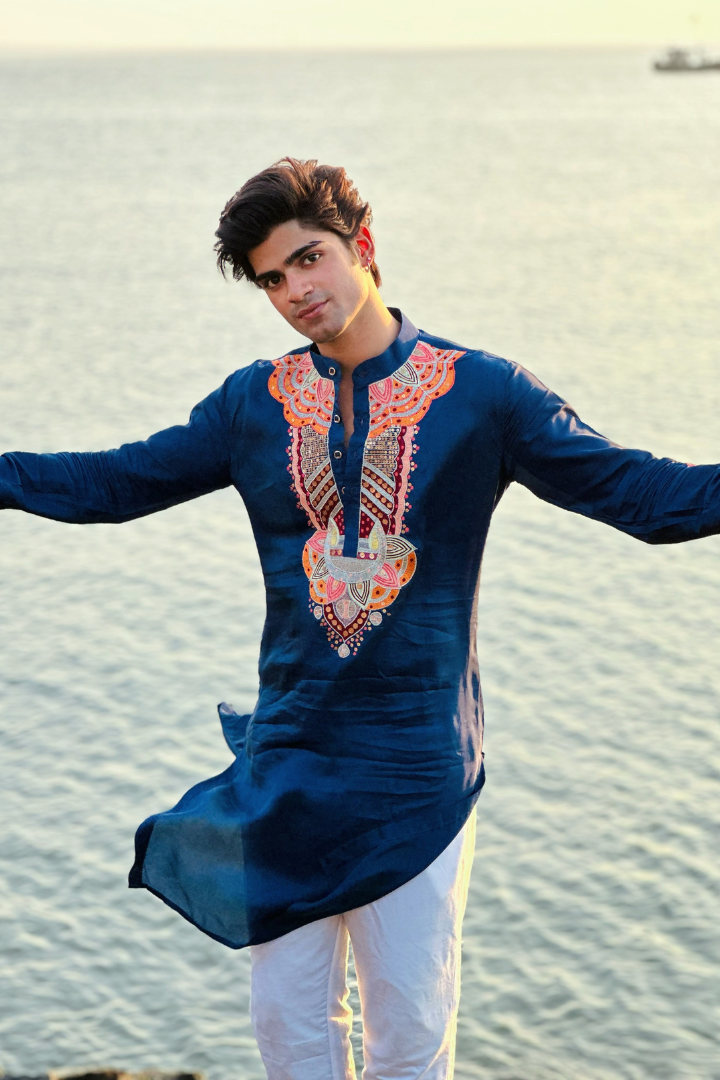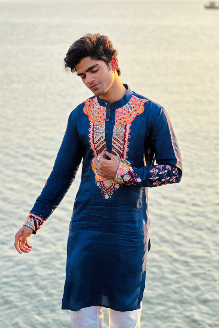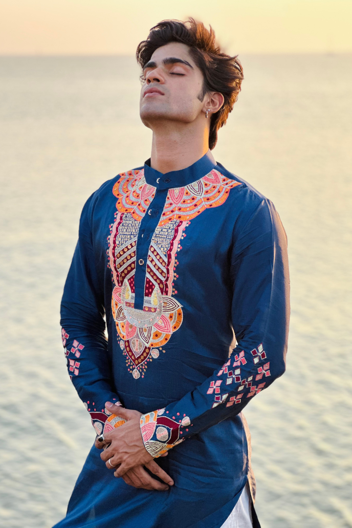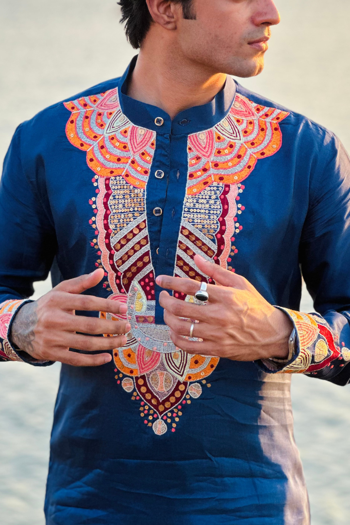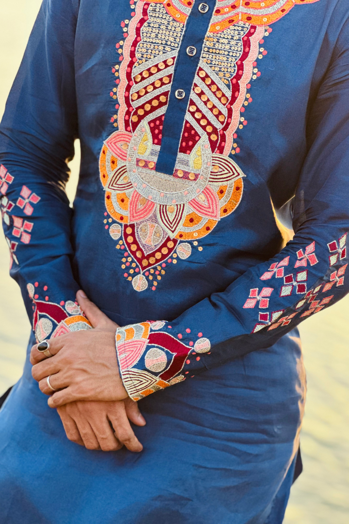 Bice Blue Kashmiri Work Men's Kurta
