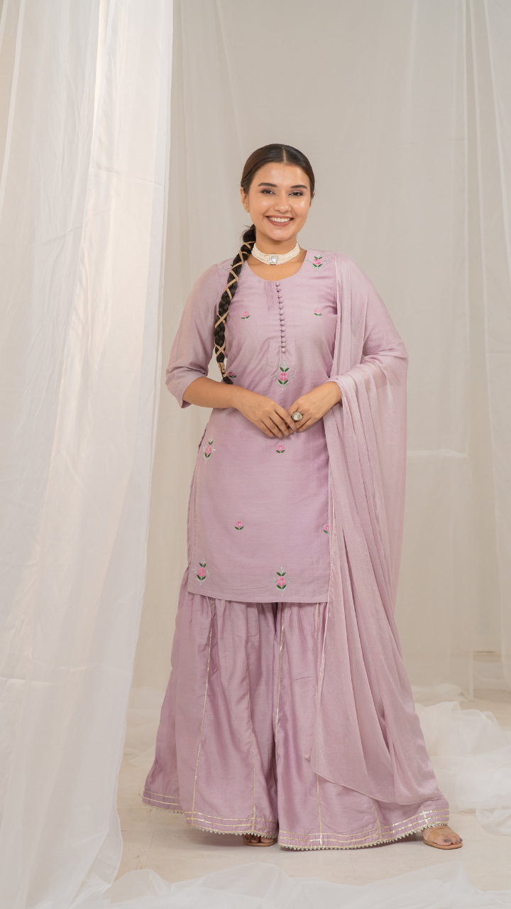 Chanderi Silk Kurta and Sharara Set with Elegant Embroidery and Chiffon Dupatta