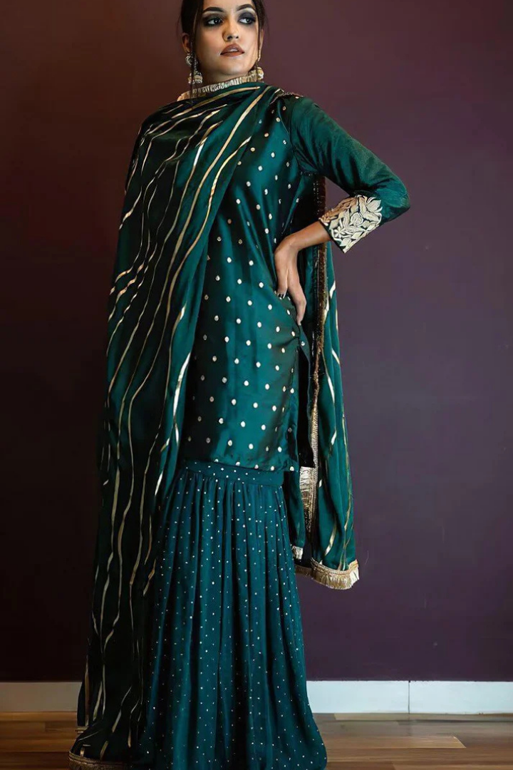 Dark Rama Green Kurta Sharara And Dupatta