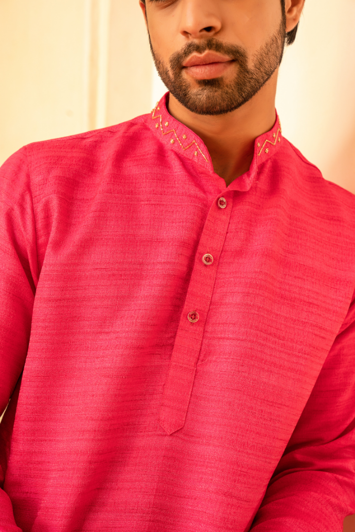Delightful Strawberry Pink Crystal Mirror Kurta Set