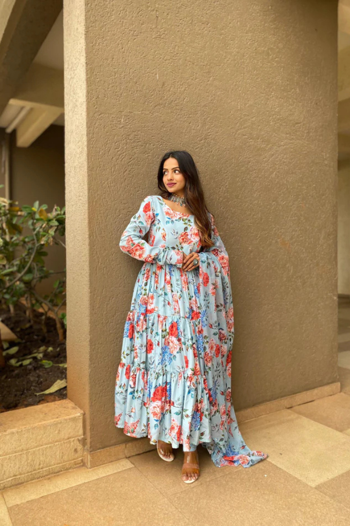 Looking for a beautiful Anarkali that can collect compliments from everyone? This Designer Printed Ruffle Anarkali is your answer. Wear it with your favorite outfit to make an impression and get noticed by everyone around you.