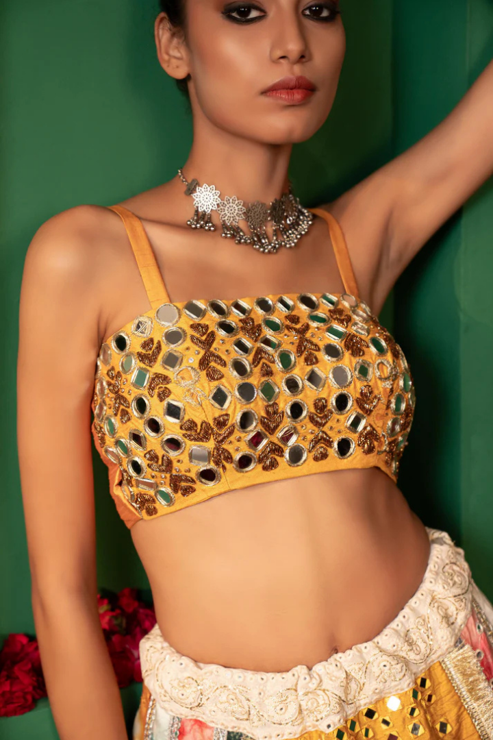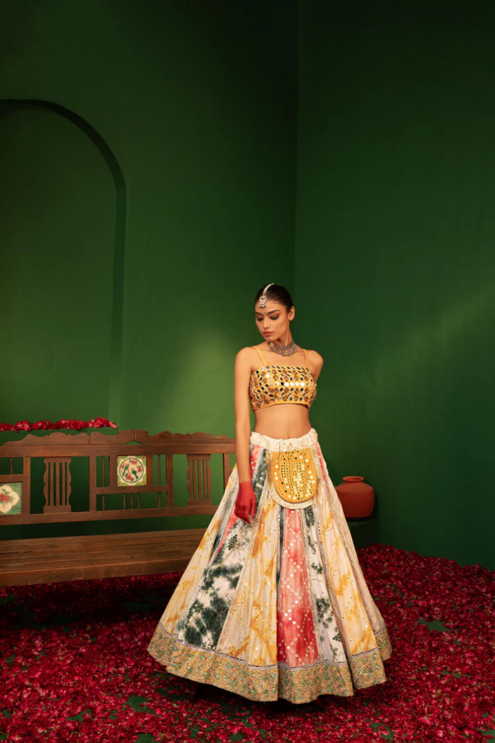 Devi Leela Colour Lehenga with Mirror Work Blouse in Chanderi Silk