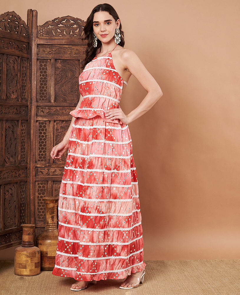 Georgia Ruffle Skirt Set comes with a top and matching ruffle skirt. The fabric is soft and light. The skirt has ruffles that move when you walk. The top fits comfortably. Easy to wear for casual use, family meets, or get-togethers.
