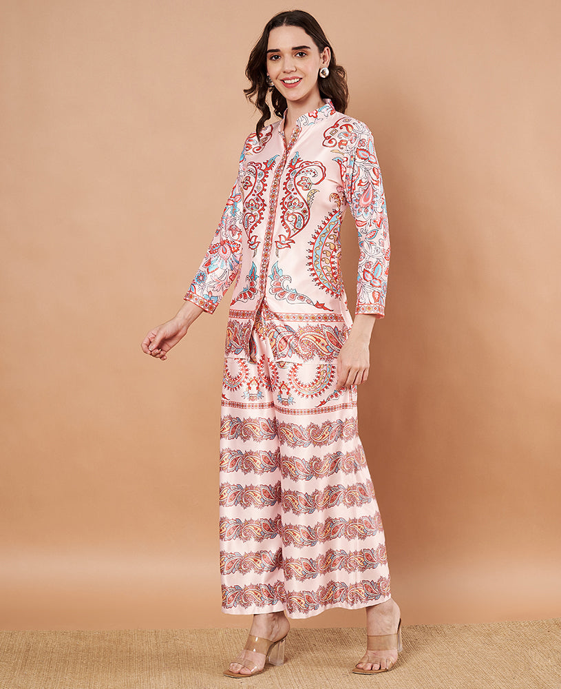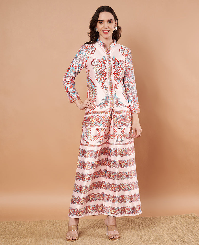 The Louise Printed Coord Set has a matching top and bottom. The print adds style without being loud. The fabric feels soft and cool. The cut is relaxed, so you can move easily. Works for casual days, family visits, or relaxed outings. Match it with simple sandals or flats.
