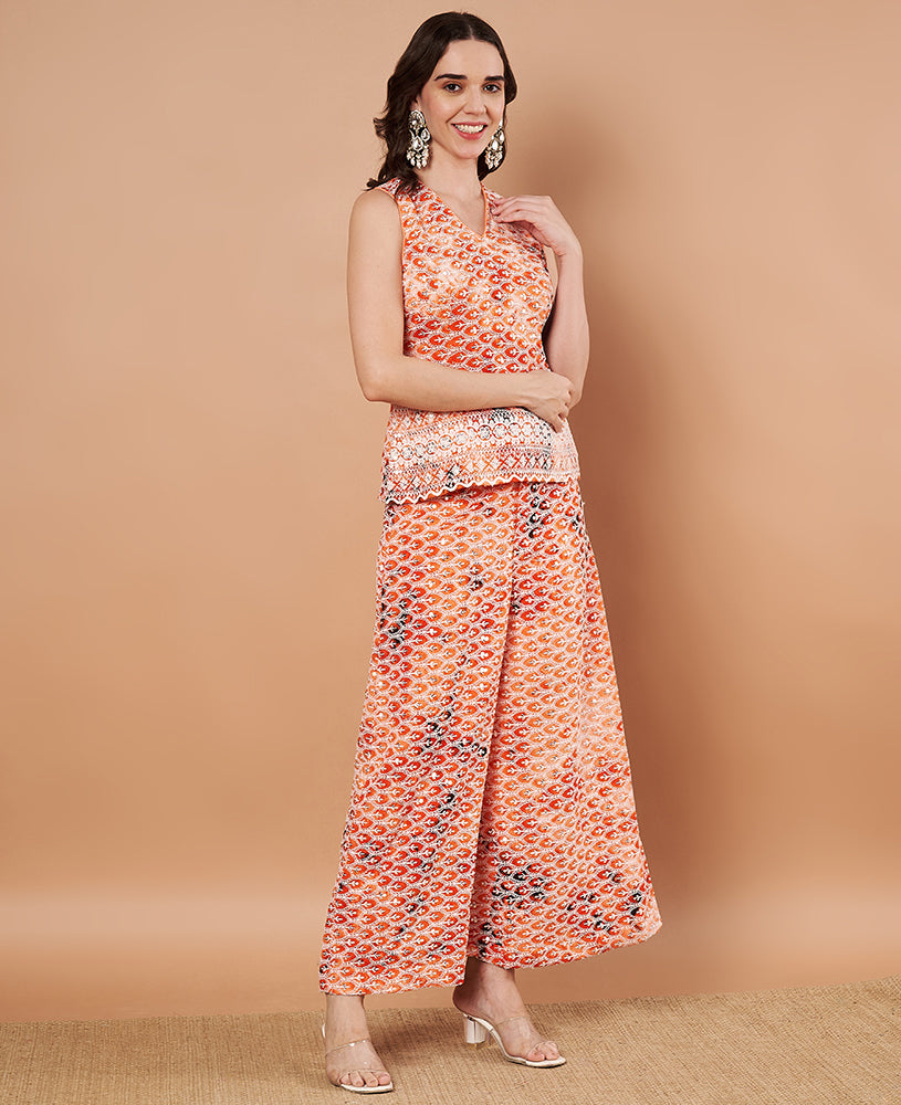 Multi Colour Crop Top And Skirt