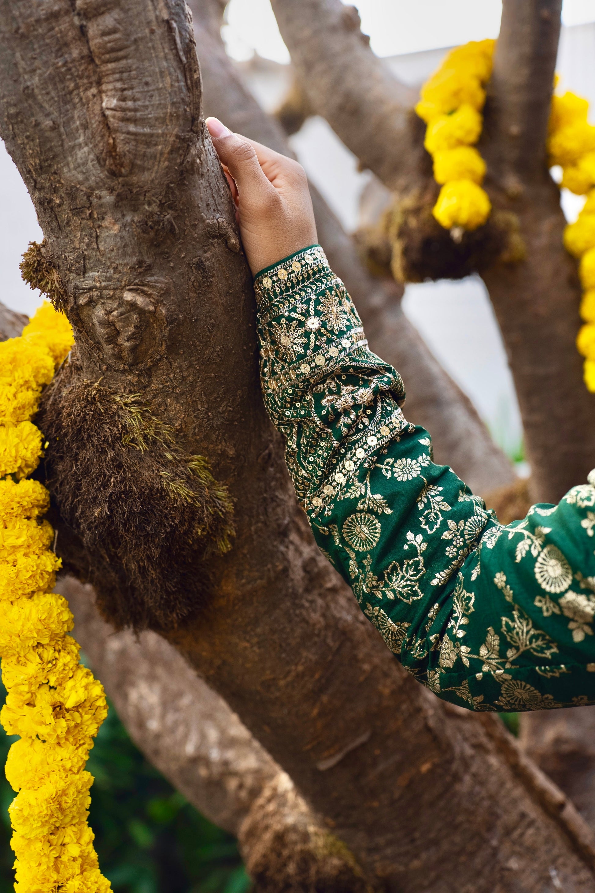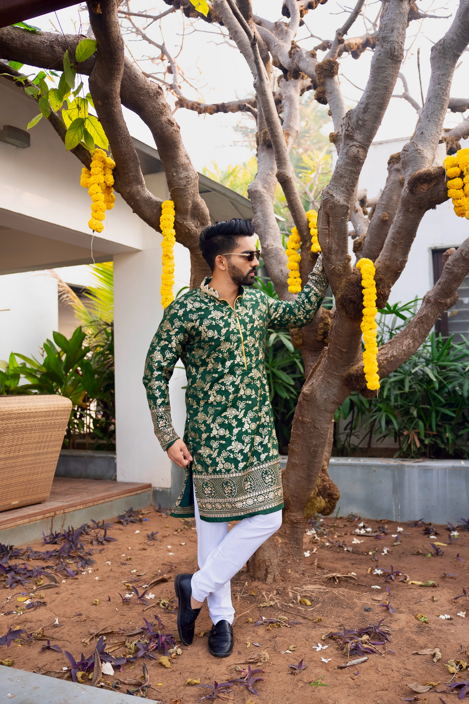 Hand-printed items contain slight defects that distinguish them apart and make them one-of-a-kind. The traditional dyeing and printing processes may cause little colour leakage on the first wash. Because these are not machine printed, the designs have a certain rawness to them that adds to the beauty of your customised outfit.