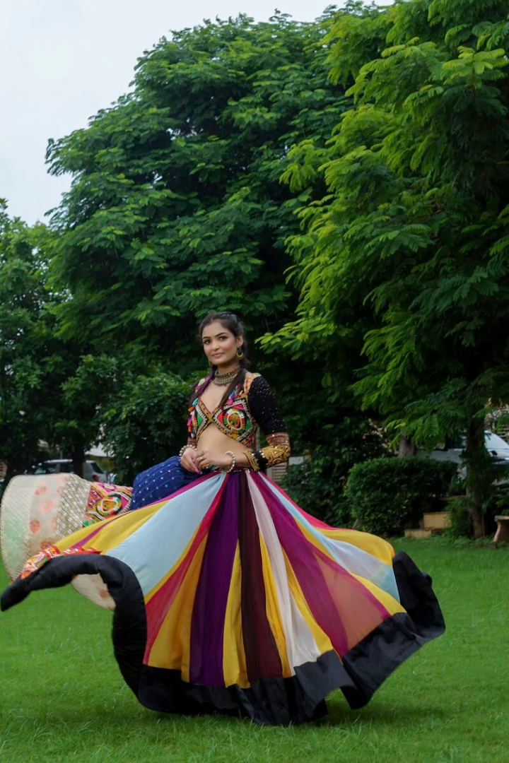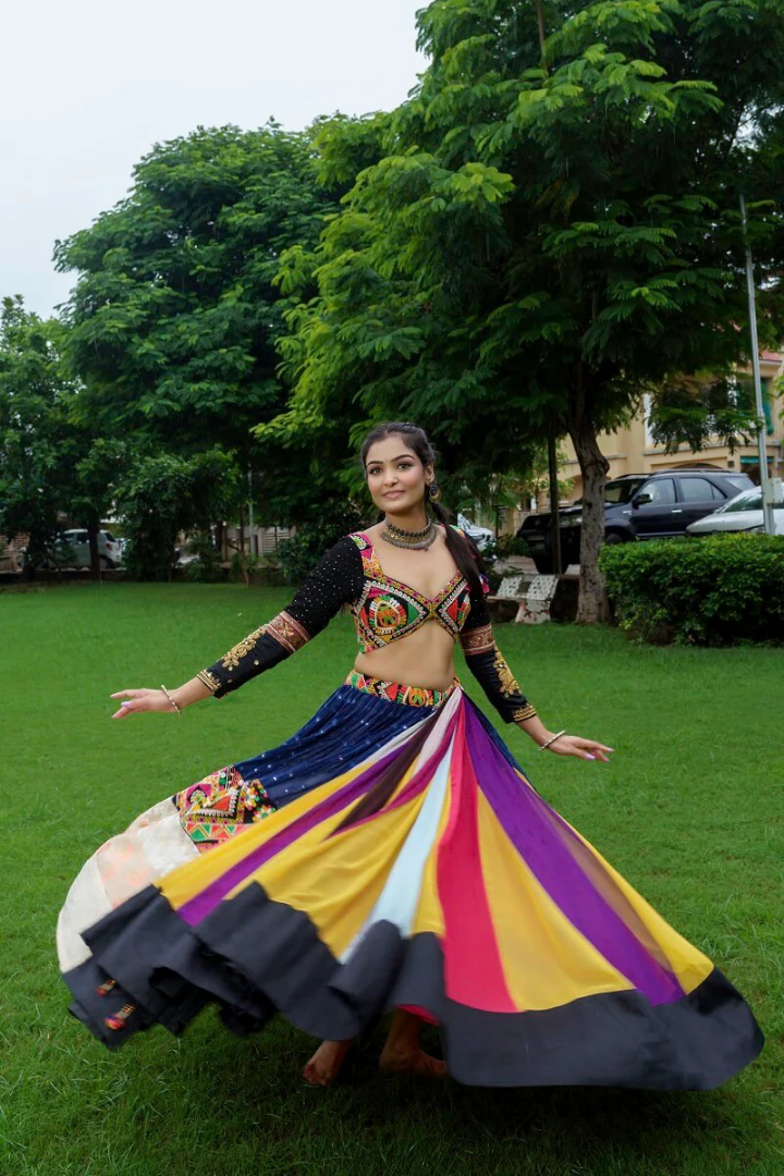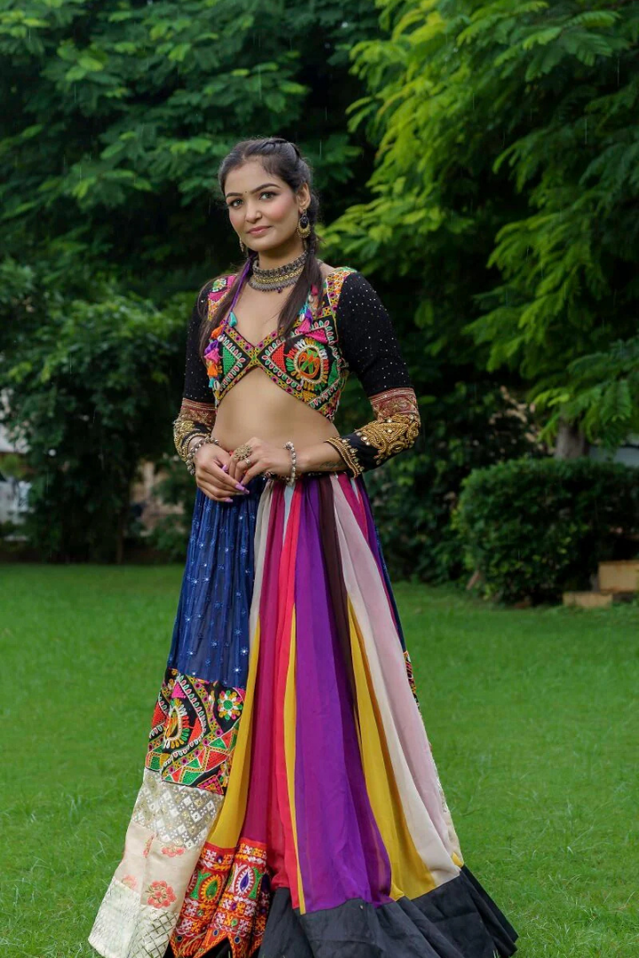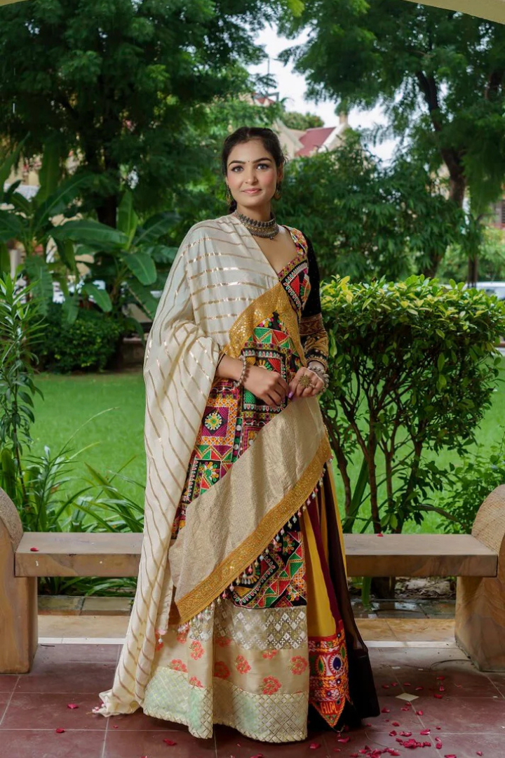 Multi-color Lehenga With Kutchi Blouse With Silk Dupatta