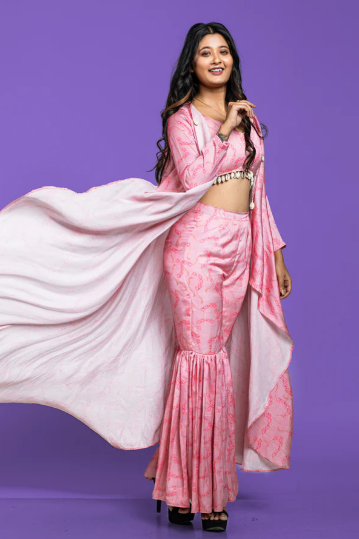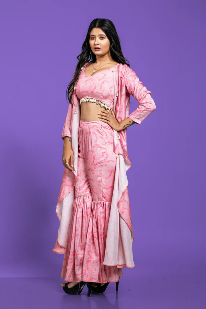 Discover the epitome of elegance with our exquisite Palazzo Jacket Indo-Western ensemble. This stunning fusion combines the grace of a palazzo bottom with the sophistication of a jacket, resulting in a fashion masterpiece that exudes charm and style.