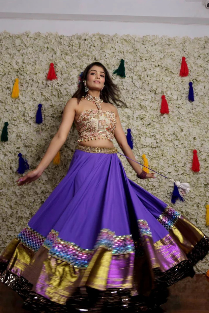 Red Lehenga With Pink blouse & Purple Silk Dupatta