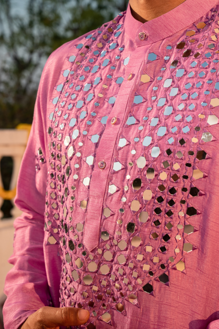 Regal Medium Violet Mirror Kurta - Luxurious Allure