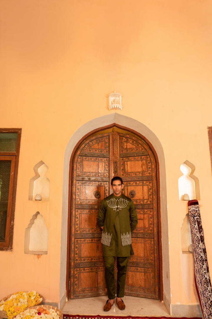 Exude understated elegance with this dark olive green indowestern outfit. The deep, earthy tone offers a versatile and sophisticated option for those who appreciate a more subdued yet stylish look.