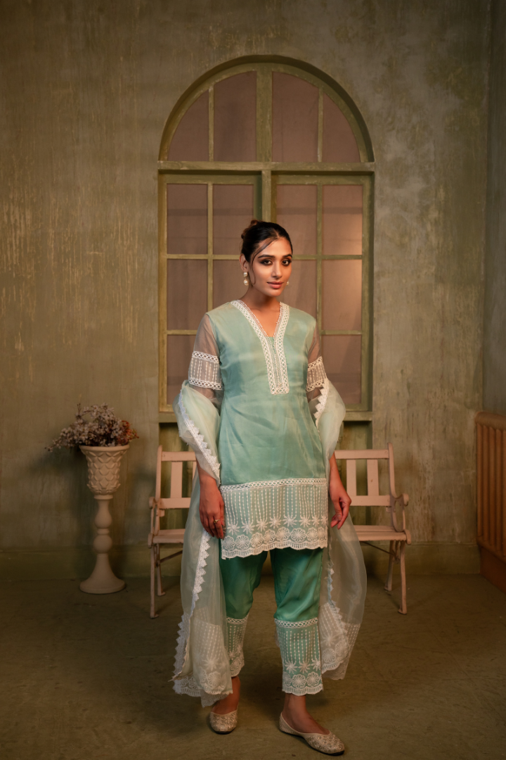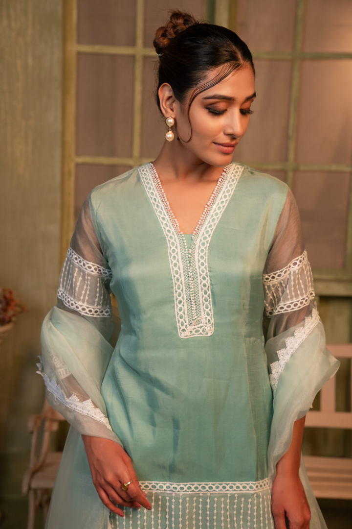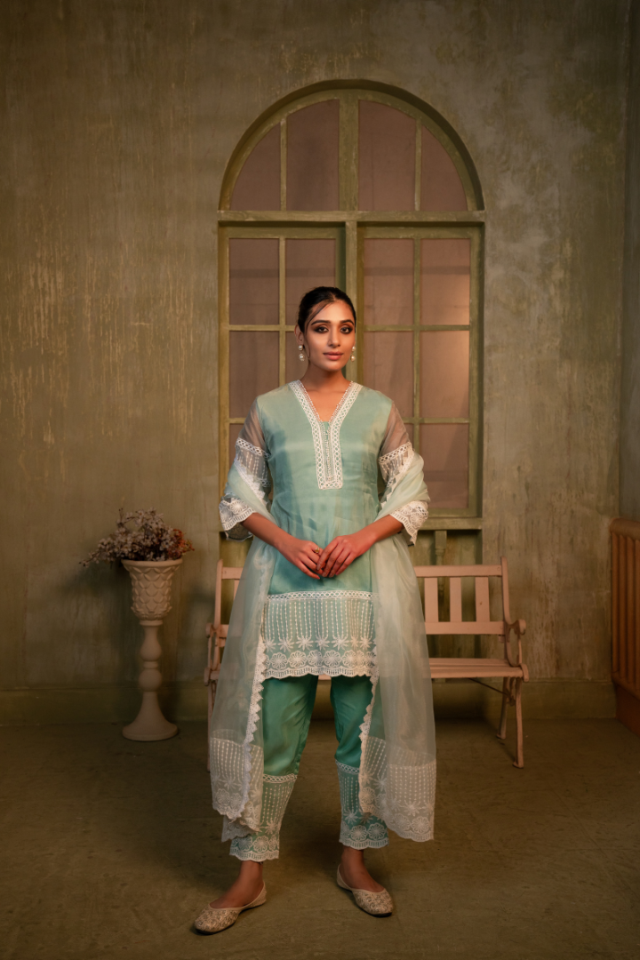 - Elegant kurta and pant set for a harmonious, stylish look
