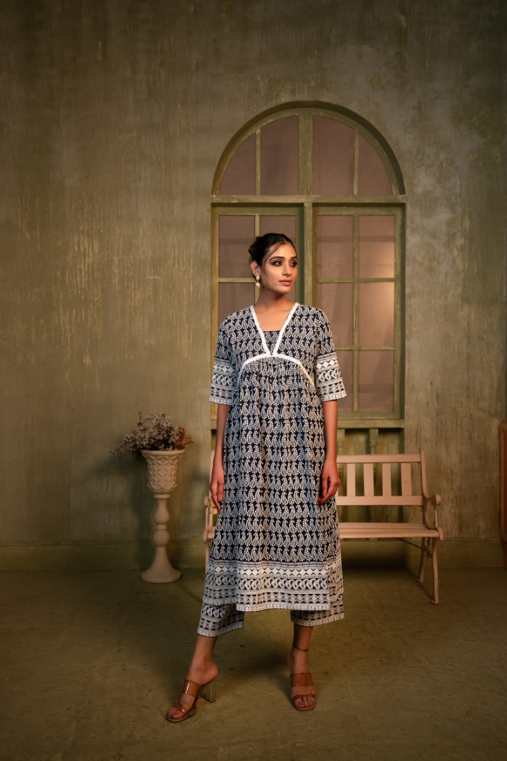 Hand-printed items contain slight defects that distinguish them apart and make them one-of-a-kind. The traditional dyeing and printing processes may cause little colour leakage on the first wash. Because these are not machine printed, the designs have a certain rawness to them that adds to the beauty of your customised outfit.