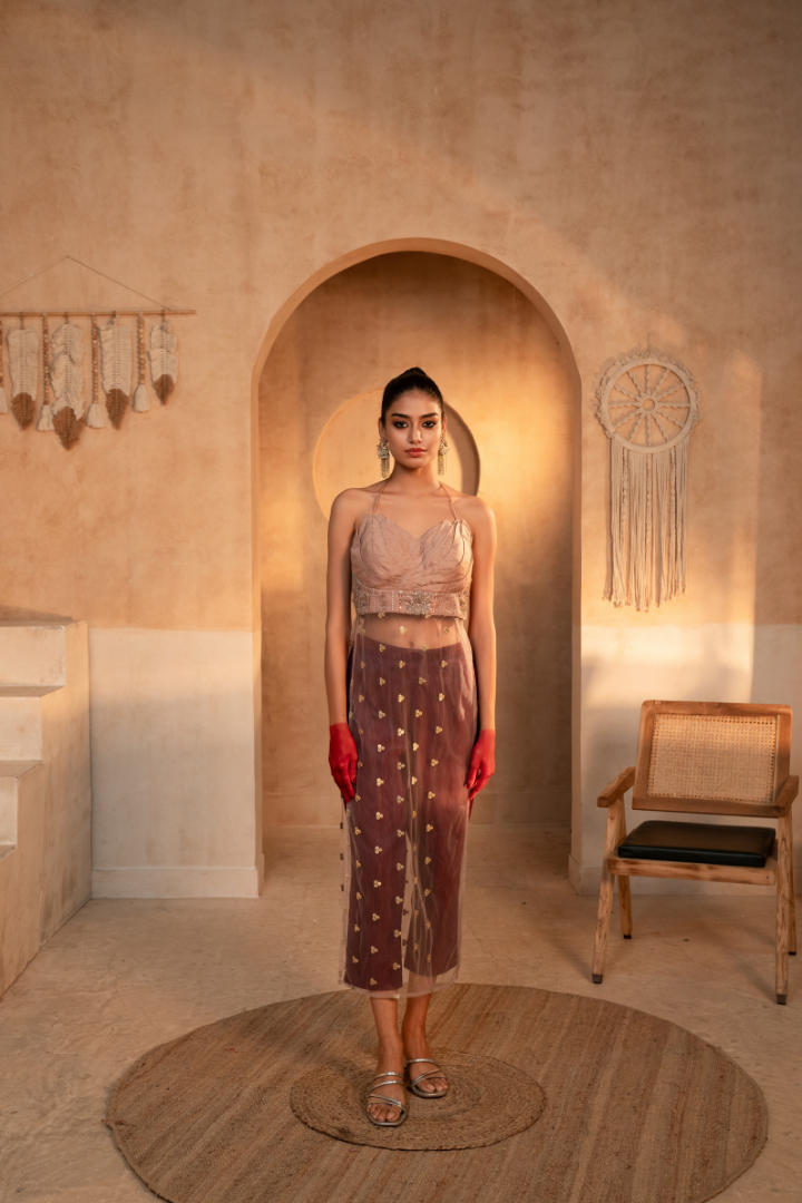 - Crafted from a luxurious blend of net and silk fabrics