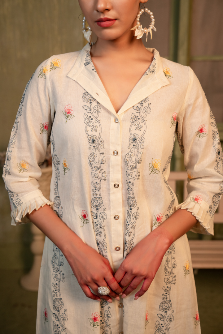 Embrace the timeless elegance of the Tammanna - Glorious Embroidery Kurta Pant. Crafted from the finest cotton fabric, this stunning ensemble features a captivating floral embroidery that adds a touch of traditional charm. The classic kurta and pant set creates a harmonious look that effortlessly blends classic elements with a modern twist. Whether you're attending a cultural celebration or elevating your everyday ethnic wear, this Tammanna creation is a versatile choice that will make you feel truly regal.