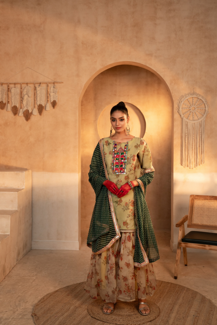 - Sharara and top made from luxurious organza