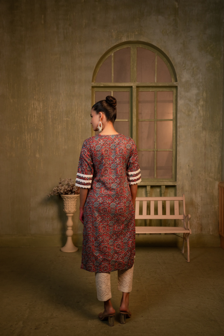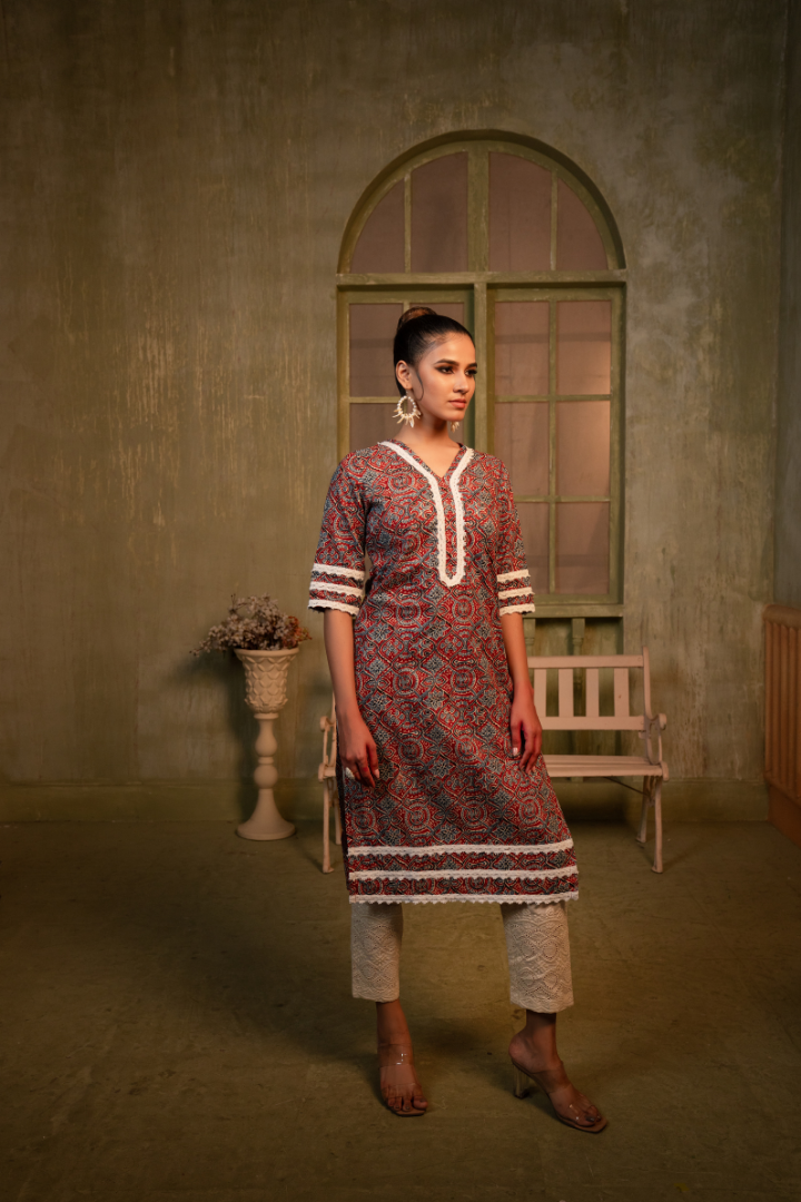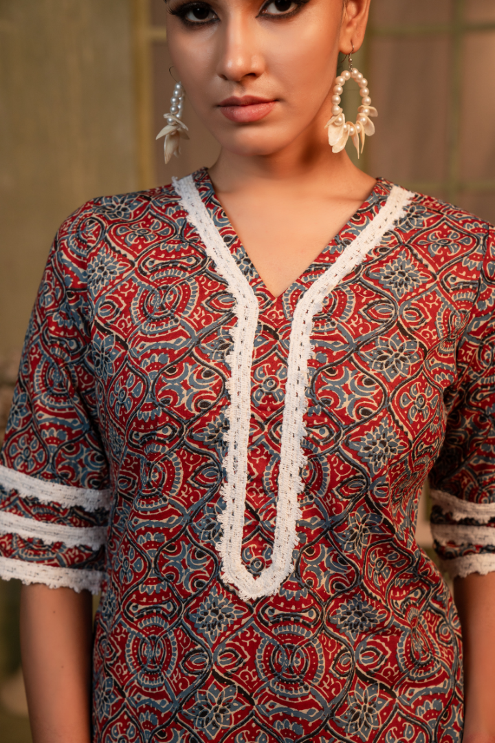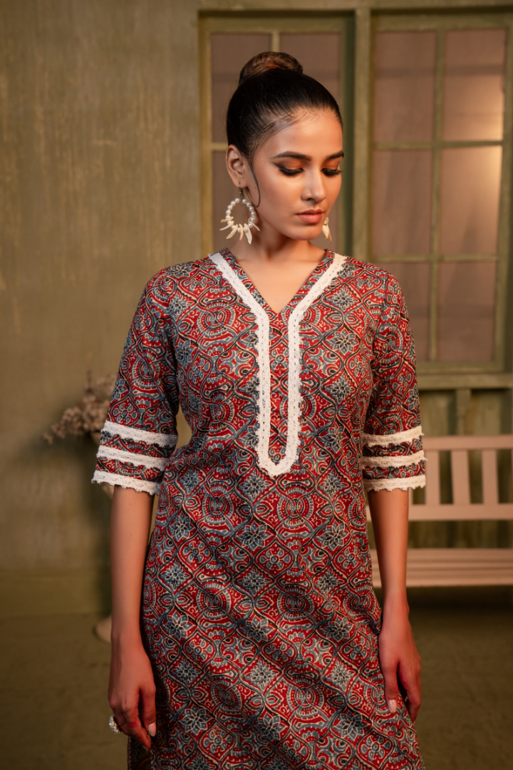 Hand-printed items contain slight defects that distinguish them apart and make them one-of-a-kind. The traditional dyeing and printing processes may cause little colour leakage on the first wash. Because these are not machine printed, the designs have a certain rawness to them that adds to the beauty of your customised outfit.